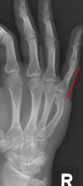 Frakturen der Mittelhandknochen kommen häufig durch einen Faustschlag (sehr oft den Mittelhandknochen V betreffend) oder einen Sturz (oft Mittelhandknochen I betreffend) zustande.